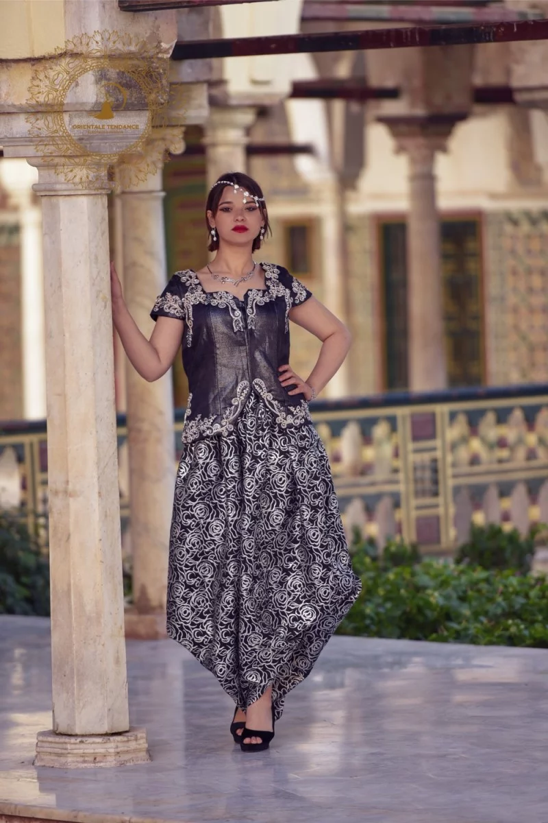 Magnifique Karakou Algérien traditionnel composé d'une jolie veste Karakou brodée demi manches, un beau sarouel, à porter lors de cérémonies de mariage, succès assuré.