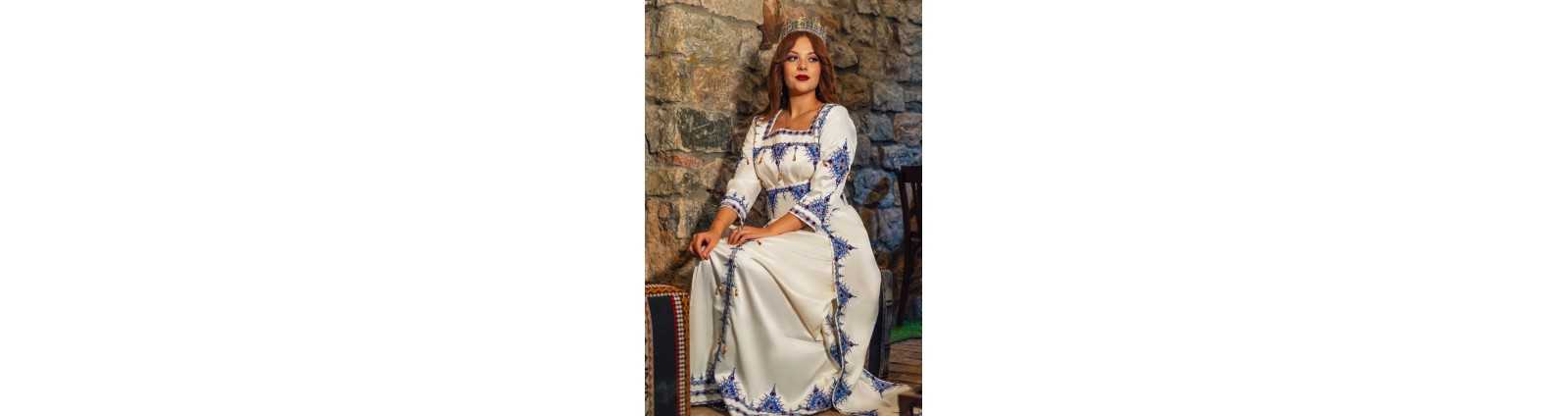 Craquez pour cette magnifique robe Kabyle de cérémonie, soyez élégante et sophistiquée avec cette  logue et jolie robe blanche en satin décorée de broderies entièrement faites à la main, vous pouvez accompagner cette tenue avec un joli châle assorti (châle vendu séparément 80€), succès assuré.